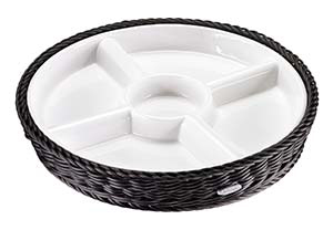 Easy-care hygienic synthetic wicker baskets combined with porcelain.