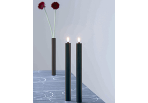 Designed by Paul Stilling, the tube is fitted with a powerful magnet in the bottom enabling it to stand straight and safe using the supplied metal plate which can be hidden beneath the tablecloth. Elegant, simple and safe!